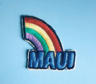 Gros patch brodé arc-en-ciel Maui, île de l'archipel d'Hawaï. Taille: 5,3 cm x 5 cm, épais 2 mm Dieu de la légende culture Maori Hawaien polynésien du Pacifique Demi rainbow v