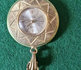 Montre pendentif + chaîne de femme " Lancel " en plaqué or (Fabriqué en Suisse) mécanisme mécanique diamètre 3cm longueur totale de la chaîne : 68cm Excellent état et fonction