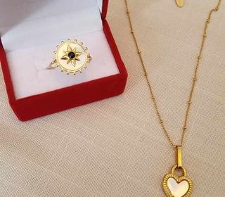 Bague jonc Etoile Victorienne, collier c?ur nacré or fin N° 1328 Agée, , J'envoie en suivi et sécurisé par la Poste depuis ma boite à lettre Magnifique bague Etoile Victorie