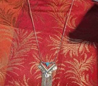 Magnifique collier sautoir avec diverses breloques Argentées et Bleues... Voir les photos, Merci ! * Grand pendentif... de 10,5 cm de Haut (Voir Photos n° 2, 3, 5 et 6) * Chaîn