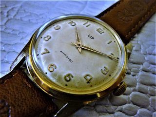 LIP1029 Montre homme mécanique 1970 belle patine d'une vintage entretenue, aspect quasi neuf Marque: LIP N° de série : 698563 Mouvement: LIP mécanique R230 17 rubis à remonta