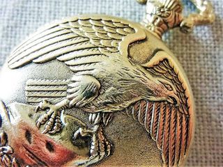 GOC0063 Montre gousset 1980, avec couvercle décor aigle en relief Jamais portée, pile neuve Marque : LUC DESROCHES Mouvement : analogique quartz à pile Calibre : ISA 369 haute