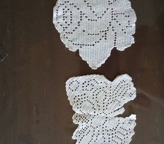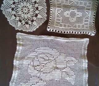 Napperons faits main 1 rectangle blanc 26 x 20 2 ronds écru blanc Ø 20 1 rond écru Ø15