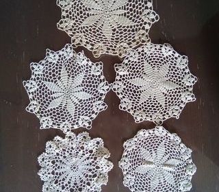 5 napperons crochet faits main blanc, beige, écru Ø21 et 15 cm