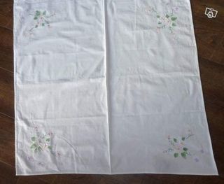 NAPPE blanche avec aux 4 coins une fleur différente - 78x79