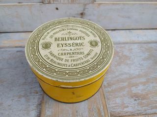 Ancienne Boite Tôle Publicitaire Berlingots Eysséric Carpentras Diamètre 13,7cm, hauteur 8,5cm Bon état