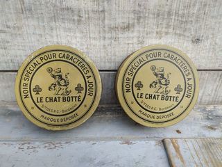 Boite Publicitaire Le Chat Botté Caractères à Jour Cirage Diamètre 12cm, hauteur 4,3cm Bon état Prix à l'unité