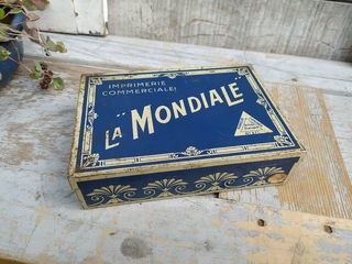 Boite Publicitaire Tampon & Caractères Imprimerie " La Mondiale " Longueur 17,5cm, largeur 12cm, hauteur 5cm. Bon état, incomplète