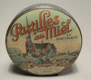 Ancienne Boite Publicitaire Pastilles au Miel du Gatinais Louis Robert Diamètre 8cm, hauteur 2,5cm. Etat : Très bon état Ref : 08