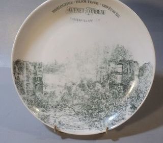 Ancienne Assiette Publicitaire Horlogerie-Bijouterie-Orfèvrerie Avenet-Corbeau Château-la-Vallière. Vers 1900 Sujet représenté : Les ruines de Vaujours. Diamètre 21cm, ha