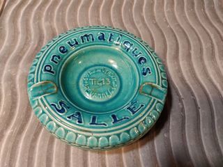 Ancien Cendrier Publicitaire " Pneumatiques Sallé " Céramique Début XXème Publicité au centre " 6 Avenue de Verdun Brévannes. Tel.13 " Dimensions : Diamètre 12cm, hauteur 3cm