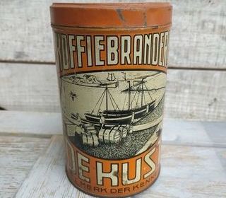 Boite Publicitaire Café Koffiebranderij De Kust Veurne Belge Hauteur 18cm, diamètre 11cm. Très bon état