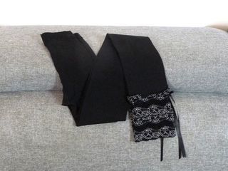 Legging/ Pantalon Noir avec sa Dentelle Noir et Blanc et son Noeud- Taille S * Legging/ pantalon noir avec sa dentelle élastiquée noir et blanc de 13cm et son noeud en ruban noi
