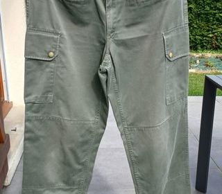 Pantalon militaria avec passant pour ceinture. Très agréable à porter (tissu souple et doux). En très bon état, excepté le bas de chaque jambière légèrement usé cause frottements