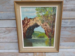 Tableau Le Pont d'Arc Ardèche Huile sur Toile Signé E.G Peinture à l'huile sur toile marouflée sur carton fort Encadrement format 49cm x 41cm Peinture format à vue 39,5cm