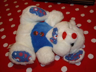 Peluche, doudou _ Aucun défaut _ Jamais utilisé _ Dimension : Hauteur 22 cm position assise + Largeur 22 cm avec les bras écartés + Largeur 11 niveau du ventre (sans l