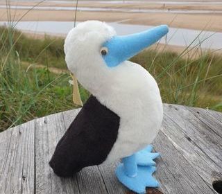 Peluche Oiseau des Galapagos Fait main San Christobal Neuf Oiseau blanc et noir, bec et pattes bleues. Les yeux sont mobiles Le fou à pattes bleues que les anglophones appellent