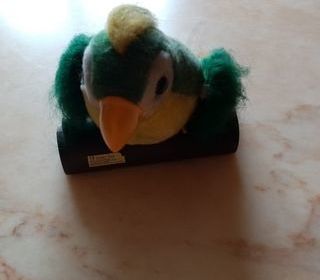 petit perroquet sur socle bougeait la tete et disait bonjour avec des piles conformité CE