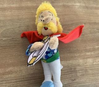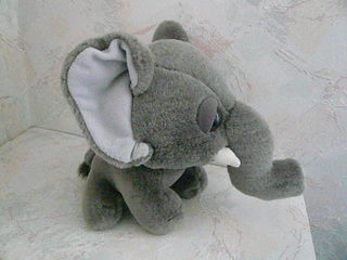 peluche elephant puffalump toile de parachute orange et bleu 26 cm en position assis j'ai mis bon etat a ete recousu au cou et etiquette effacee envoi rapide ref 437