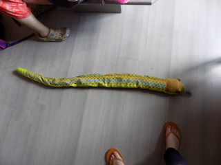 Beau serpent en peluche vert environ 1.30m avec une petite clochette dans la queue bruit très léger
