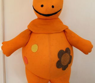 peluche luciole vintage corps tissu fleuri tete plastique mou s'allume quand on appuie sur le ventre 36 cm bon etat envoi rapide ref 440