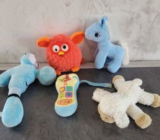 Peluches pour enfants bon état. - 1 ours: environ 85 cm: 10 euros - 2 ours: environ 65 cm: 5 euros chacun - chien couché: environ 45 cm: 5 euros - chien avec veste: envi
