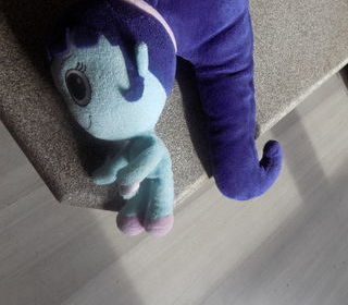 peluche elephant puffalump toile de parachute orange et bleu 26 cm en position assis j'ai mis bon etat a ete recousu au cou et etiquette effacee envoi rapide ref 437