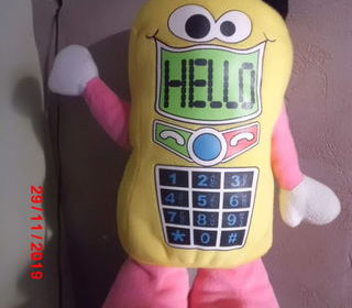 peluche telephone jaune et rose en velours gratte 33 cm marque munelocos tres bon etat envoi rapide ref 404