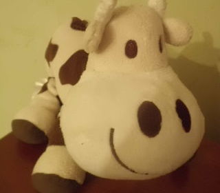 peluche doudou vache ecru et marron en velours gratte 20 cm de long sur 16 cm de haut au niveau de la tete marque h&m tres bon etat envoi rapide ref 434