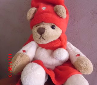 peluche doudou ours beige et rouge en velours gratte 22 cm marque bukowski tres bon etat envoi rapide ref 379