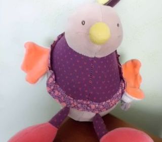 peluche poule musicale en velours gratte et tissu jersey (chanson de brassens) 18 cm marque moulin roty collection les cousins du moulin tres bon etat envoi rapide ref 430