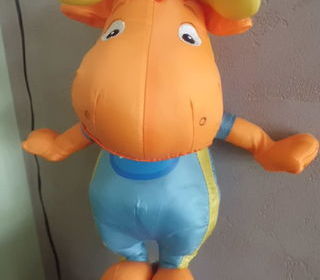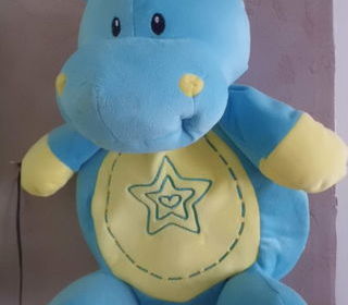 peluche range pyjama hippopotame bleu et jaune en velours gratte 35 cm marque jeux de momes tres bon etat envoi rapide ref 412