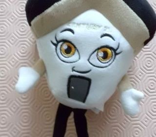 peluche en forme de maison blanche beige et noire 24 cm marque century 21 tres bon etat envoi rapide ref 433