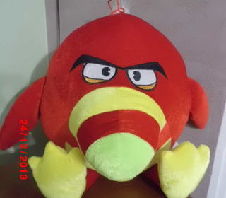 peluche angry birds rouge et jaune en velours gratte brillant 36 cm avec les pattes marque toy's compagny tres bon etat envoi rapide ref 407
