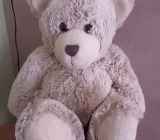 peluche ours marron chiné museau et bouts des pattes velours gratte beige yeux plastique 26 cm marque zara home tres bon etat envoi rapide ref 423