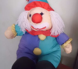 peluche clown puffalump toile de parachute multicolore 50 cm avec le bonnet marque nicotoy tres bon etat sauf etiquette qui commence a s'effacer envoi rapide ref 435