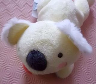 peluche bouillotte koala jaune et blanc en velours gratte 23 cm en position allonge marque dodie tres bon etat envoi rapide ref 438