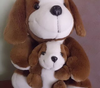 peluche chien marron et blanc avec son bebe 35 cm en position assis marque gmbh happy people tres bon etat envoi rapiide ref 416