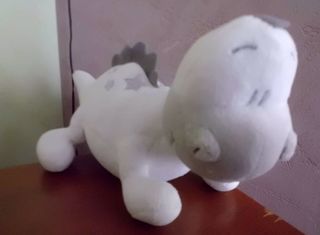 peluche doudou dinosaure blanc et gris en velours gratte brode etoiles argent 23 cm de long sur 15 cm de haut au niveau de la tete marque prenatal tres bon etat envoi rapide ref 43