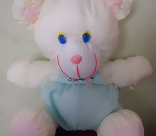peluche elephant puffalump blanc et rose en toile de parachute 38 cm en position assis marque tomas j'ai mis bon etat a ete recousu a l'arriere mais rien de mechant la peluche rest