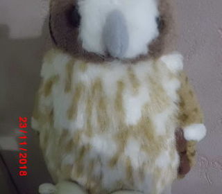 peluche chouette marron beige et blanche sonore quand on appuie sur le ventre en crie 16 cm marque k&m tres bon etat envoi rapide ref 324