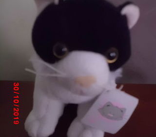 peluche chat blanc et noir en velours gratte yeux plastique 15 cm de haut au niveau de la tete marque planet plush tres bon etat envoi rapide ref 399
