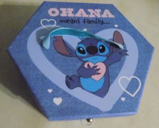 Boîte à bijoux en carton dur avec bracelets et pendentifs aux couleurs de Stitch