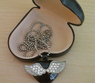 Pendentif c?ur noir ailes d'Ange argentées N°927 A prendre sur place uniquement Magnifique pendentif c?ur noir ailes d'Ange argentées Avec des pierres très brillantes de chaque