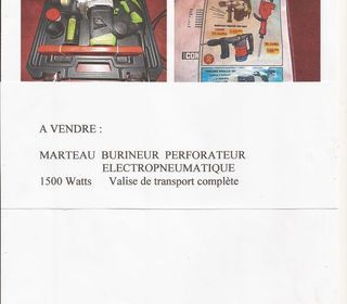 Vend pour cause de double emplois un Marteau Burineur Electropneumatique de 1500 Watts Avec sa valise de transport complète