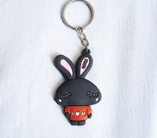 !! ANNONCE visible, donc DISPONIBLE !! Beau porte clés Lapin Love, recto-verso Silicone/caoutchouc souple, bien épais. Lapin seul : 5 cm de haut. Avec anneaux : 9 cm de haut.