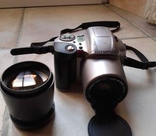 A saisir appareil photo argentique Olympus IS/200 Objectif zoom 28 mm-110 mm d'amplitude - 4 fois environ + un zoom Olympus IS/L/LENS-C-210 - H.Q. converter 1.9X + sa pochette d