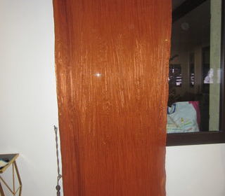 RIDEAUX ORANGE EN POLYESTER EXCELLENT ETAT A OEILLETS 2.35 HAUTEUR X 80 CM LARGE