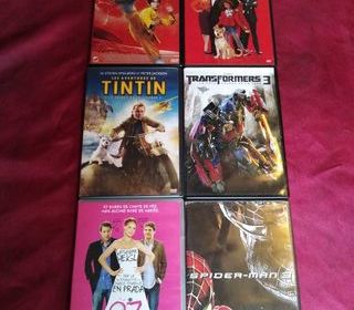 Vends lot de 6 DVD : Les aventures de tintin Annie Shaolin soccer Spider-Man 3 27 robes de conte de fée aucune robe de mariée Transformers 3 10 euros les 6 Possibilité d'envoi