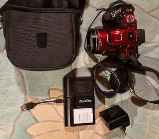 appareil photo en excellent état de fonctionnement et de présentation. Un lot comprenant 1 appareil, 2 batteries , un chargeur de batteries double, une sacoche, une prise secteur/